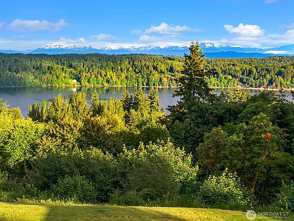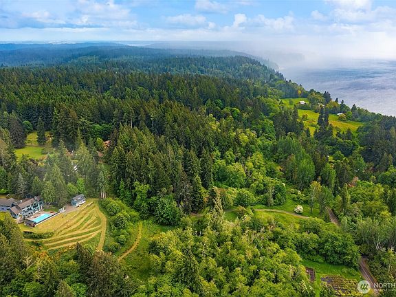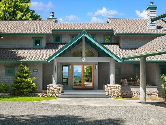 Experience the best of Pacific Northwest living in this stunning 4,000 + sq ft Mountain & Sound view retreat on nearly 5 private acres. This 3 bedroom, 5 bath custom home offers expansive living spaces, soaring ceilings, and breathtaking views from nearly every room. Clear Fir trim & custom cabinetry, stone fireplaces, lower level game/rec room with wet bar & wine cellar. Primary suite has its own access stair & balcony. Enjoy summer entertaining with a large in-ground pool and spacious patio. Two detached dwelling units provide flexible options for guests or rental income. Huge shop offers space for hobbies, storage, or business use. A rare opportunity to own a private oasis just minutes from town, with room to live, work, and play.