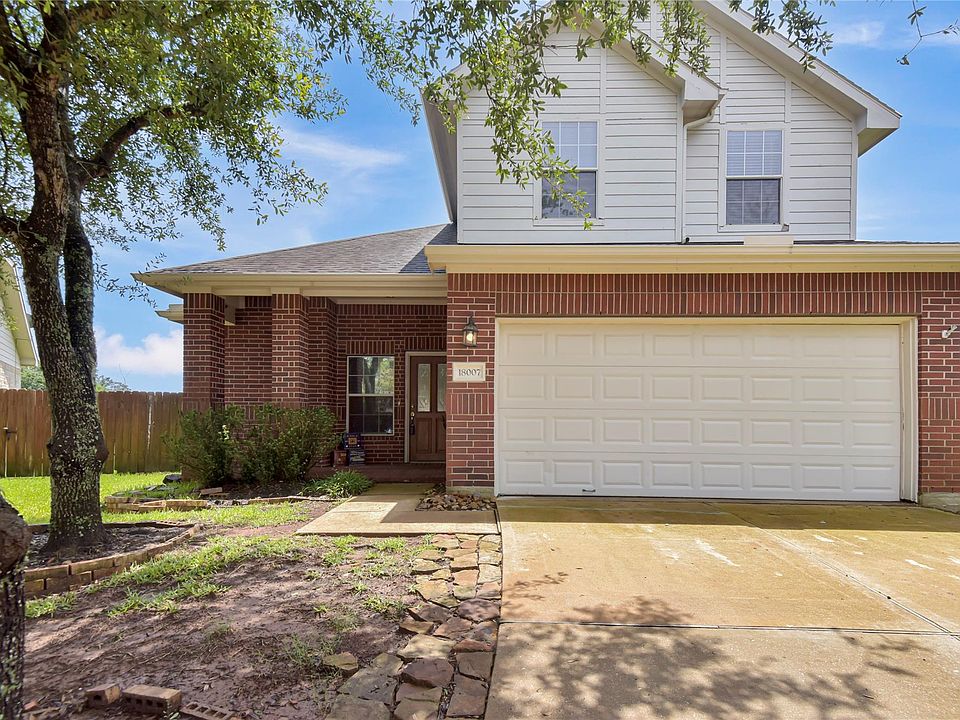 Spectacular four bedroom home on cul-de-sac in Oakcrest North! Charming front bricked porch welcomes you into the foyer that has easy access to the attached garage, a powder room, and a spacious utility room. Large family room is equipped with high ceilings and opens up to the breakfast area and kitchen. Kitchen features breakfast bar, pantry, tons of cabinet and counterspace, and lots of natural light overlooking the massive backyard. Primary bedroom retreat is located on the first floor with two walk-in closets, gorgeous floors, and a relaxing en-suite. Upstairs features a very large game room with closet and chalkboard painted accent wall, three secondary bedrooms with spacious closets, and a secondary bathroom. Backyard hosts a large patio overlooking a huge green space. Outdoors is perfect for entertaining with many different outdoor activities.