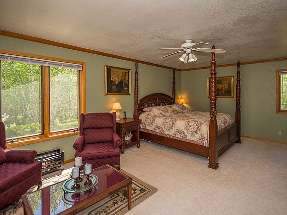 This 4+ bedroom, 4 bath property is situated on 5 private acres. Features include master suite, big main floor bedrooms with jack & jill bathroom, ceramic tile, hardwood floors, oak cabinets, dual wall ovens, formal dining room, center island with cooktop and breakfast bar, screen porch, deck, patio doors, lower level wet bar area, central air, circle drive, foyer and the list goes on. This property has over 4,000 square feet! New roof in 2015!