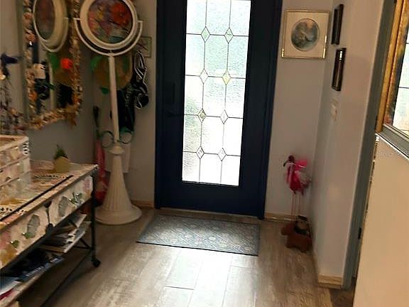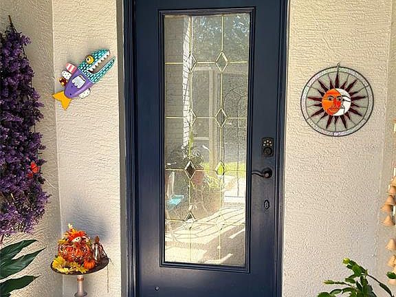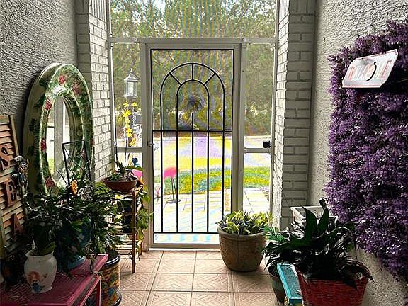 This charming Villa is located on a private cul-de-sac in the Pine Meadow Village. All 1325 square feet have artistic coloring and textures. The main living areas of the home have laminate flooring installed in 2024 and carpet in both bedrooms. The HVAC system was replaced in 2020 and the Hot Water Heater in 2025. Stainless appliances were added in 2018 and a living room skylight in 2020. The master bath was updated with shower, vanity, counter and vessel sink in 2024. There are updated light fixtures and fans throughout the home. The Lanai is complete with vinyl windows, AC, and carpeting. Just outside the Lanai door is a patio perfect for grilling or just being outdoors. The Garage is equipped with a screen to let in the warm breezes. Heritage Pines is a very active community offering a private 18-hole golf course, lighted tennis and pickleball courts, Olympic size swimming pool and spa, not to mention excellent dining and entertainment and crafts/clubs for every interest.