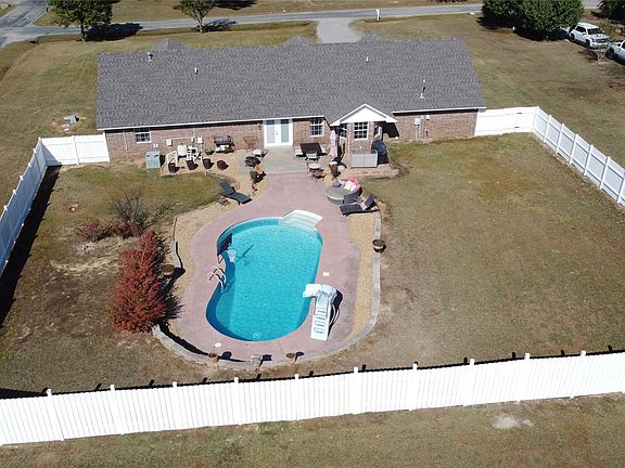 Stunning 4 bedroom/2 bath home in the prestigious Roll N Hills subdivision in Stigler, Oklahoma. This immaculate property sits on a corner acre lot within minutes to Lake John Wells. The property has a large 2 car garage with a storage room & privacy vinyl fencing enclosing a 17X33 saltwater auto cleaning pool system. The pool has a new pump in 2020 & comes equipped with a slide, basketball goal, & volleyball net. Home has a new roof in 2019, aerobic septic system 5 years old, & 10X14 building. MUST SEE!