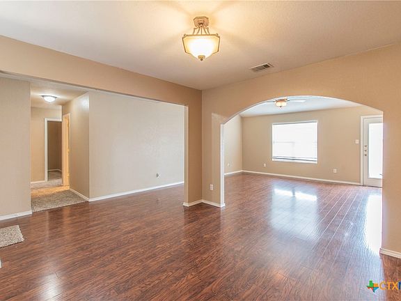 Wonderful 3/2/2 in Belton ready for a new owner. 4 sides brick with large living area with laminate flooring, 2 dining areas (breakfast area and formal dining room), large open kitchen concept, pantry, Bosch dishwasher, tons of counter space and includes refrigerator. Separate utility area off kitchen. Great sized primary bedroom with large bathroom and walk in closet, 2 secondary ample sized bedrooms both. Ceiling fans in living areas and all bedrooms. Only bedrooms have carpet (replaced in 2024) and fresh interior paint (2024), roof 2022 and nice sized back yard with privacy fence.