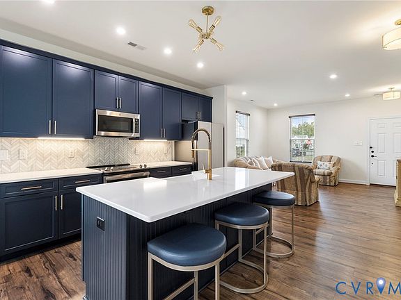 Welcome to Twin Rivers at Meadowville! This gorgeous two-story home is packed with style and thoughtful upgrades, offering 3 bedrooms, 3 full baths, and nearly 1,700 sq. ft. of inviting living space. Perfectly positioned on a corner lot, it combines curb appeal with comfort inside and out. Step inside and feel the difference—wide-plank flooring runs throughout, leading you into an open layout designed for today’s lifestyle. The family room is light-filled and spacious, flowing right into a show-stopping kitchen where every detail shines. Quartz counters, a beadboard island, farmhouse sink, 42” cabinetry, under-cabinet lighting, and a stunning tile backsplash make it a dream for both everyday meals and entertaining. The first-floor primary suite offers true retreat status with its spa-inspired bath featuring dual vanities, decorative tile, a frameless glass shower door, and a walk-in closet you’ll love. Another bedroom and full bath on this level create the perfect setup for guests or a home office. Upstairs, a private bedroom with its own bath and walk-in storage gives you flexibility to grow. Thoughtful touches are everywhere—raised outlets for sleek wall-mounted TVs, LED lighting, ceiling fan prewires, and an insulated garage package with opener already in place. Even the staircase has been upgraded with wrought iron balusters for a custom touch. Outside, a 15x10 patio and spacious backyard set the stage for summer cookouts, gardening, or simply relaxing under the stars. All of this in a community you’ll love—just minutes to I-295 for a quick trip into Richmond, or hop on I-95 to reach Chesterfield with ease. Twin Rivers is the newest part of Meadowville Landing, where you’ll enjoy fantastic amenities including a clubhouse, fitness center, pool, playground, pickleball, bocce, and sidewalks throughout. Upgraded, move-in ready, and absolutely beautiful—this one is too good to miss! (Some photos are virtually staged)
