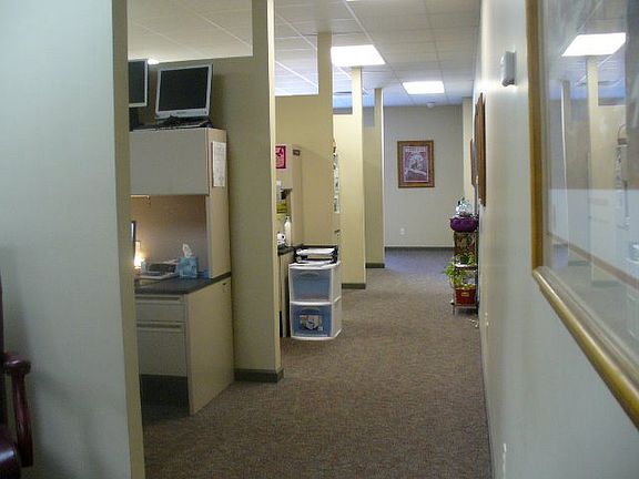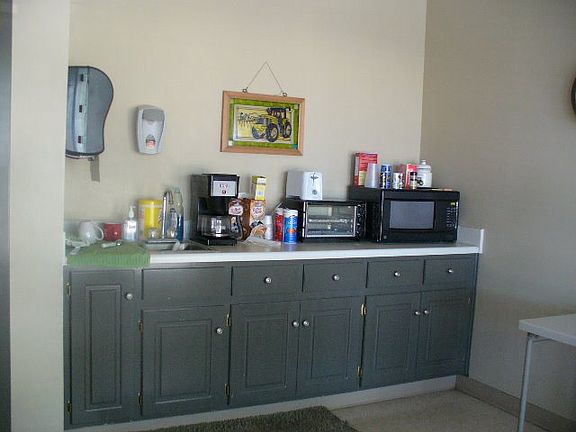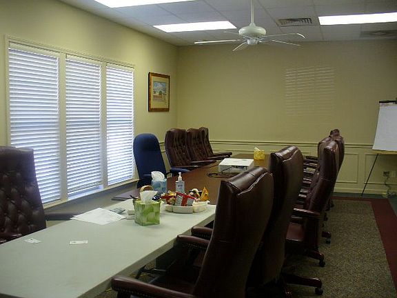 six offices large room conference room 4 restrooms lobby and reception kitchen drive-thru storage at rear