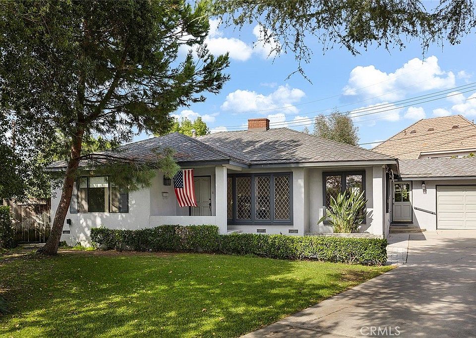 Nestled at the end of a quiet cul-de-sac, this inviting south-facing 4-bedroom home offers wonderful curb appeal with its welcoming front porch, extended driveway, and attached 2-car garage.  Step inside to a bright living room featuring hardwood floors, a wood-burning fireplace, and large windows that fill the space with natural light. The adjoining dining room leads to the kitchen complete with a built-in microwave, gas cook top, oven, dishwasher, and a walk-in pantry. Just off the kitchen, a spacious laundry room provides ample storage with linen closets and a convenient folding station.  All bedrooms are generously sized, with thoughtful details such as mirrored closet doors, walk-in closets, and a hallway lined with cabinets for extra storage. The second bedroom features a cozy sitting area by the window while the versatile fourth bedroom—ideal as a den or family room—includes a half bath and sliding doors that open to the patio and expansive grassy backyard perfect for entertaining or relaxing outdoors.  Located just minutes from top-rated Arcadia Unified Schools, this home offers  the buyer an opportunity to make it their own.