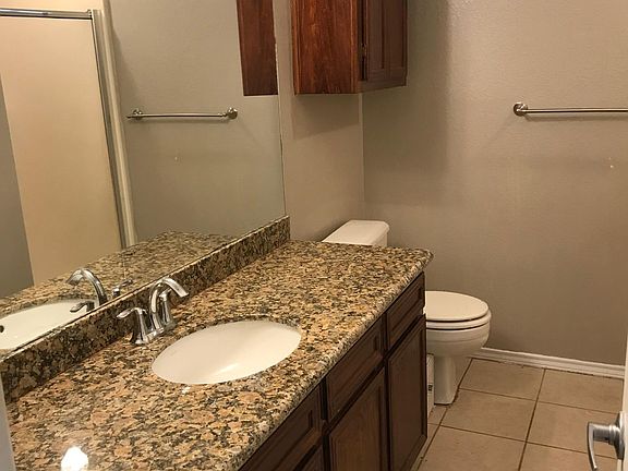 Granite counter tops in kitchen and bathrooms. Ceiling fans in living room and both bedrooms. Central AC. Refrigerator, dishwasher, stove, and built in microwave above stove. Full size washer and dryer in unit. Bathtub in hall bathroom and walk-in shower in master bathroom. Fenced backyard with concrete slab back patio. Levolor wide slat mini-blinds covering all windows. Owner takes care of yard and pays for garbage. No smoking cigarettes or pot inside or outside of the apartment. Pets only allowed with deposit. Large dogs $200 per dog. Small dogs and cats $100 per pet.