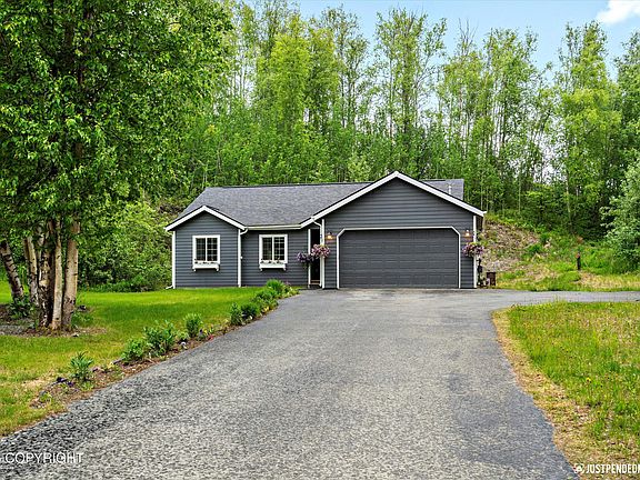 Discover this centrally located 1.33-acre property in Wasilla, offering convenient access to all local amenities. With over an acre of flat, usable land, this well-maintained home is ready for you to move in, featuring a paved driveway, gutters, and beautifully landscaped grounds with numerous mature perennials. The hill behind the property ensures you will always enjoy privacy.Inside, you will find a spacious layout complete with granite countertops, a large kitchen with a pantry, laminate flooring, upgraded lighting, custom tile work, wiring for a surround sound system and a gas fireplace. The highlight is the covered back deck, perfect for year-round enjoyment, equipped with a gas line for easy access grilling, and a low-maintenance, fenced-in backyard. A wide plot to the side of the home offers excellent space for toy parking or RV parking. Additional features include upgraded appliances, a garden window in the kitchen, gutters, hot tub wiring, and a well hydrant. This home offers great value and is truly a must-see!