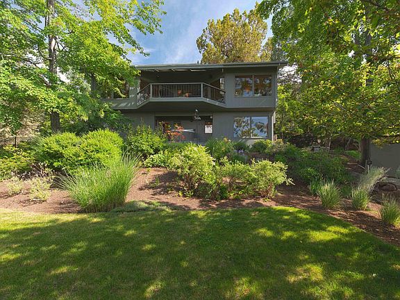 A true Mid Century Modern beauty in NW Bend! Enjoy sweeping views of downtown Bend, Old Mill District including the iconic smoke stacks and the amphitheater. This custom built home was designed into the side of the hill, utilizing every aspect of the natural terrain to enhance efficiency in the home. With the 3 bedrooms on the lower level staying cool in summer and warm in winter. Recent updates include all new hardwood flooring, remodeled bathrooms, interior paint, new light fixtures, new electrical (EV charging station) and much more. The great room is the show stopper with vaulted wood ceilings and a wall of windows that lets the light in. The chef's kitchen has a large center island, two sinks, induction cooktop, custom pantry and tons of storage. In addition to 3 bedrooms, there's a bonus room and den/office. The well designed double garage is extra wide/deep, with a utility sink, built in workshop cabinets & storage. The fully fenced backyard looks like your own park.