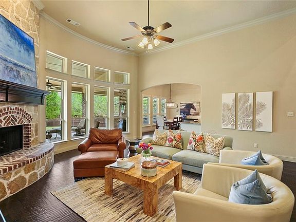 Beautiful Paul Taylor home, nestled on .38 acres of lovely landscaped grounds w spacious backyard & rare bonus of a wooded area for optimal serenity. Generous outdoor living- kit w built-in grill, fridge &party bar- plus gorgeous upgraded interiors, provide a perfect backdrop for entertaining. Top-of-the-line vaulted kit enhanced by granite,center island &SS app. 1st floor offers a private split-bdrm layout w master, guest suite & study. Master retreat w spa-like bath boasts granite vanities, jetted tub & sep shower. Upstairs 2 add'l bdrms, 2 full baths, gameroom & vaulted media room.Handscraped hardwoods,wood staircase,vaulted ceilings, stone fp,beautiful millwork & built-ins,large laundry-mudroom. Lovejoy ISD