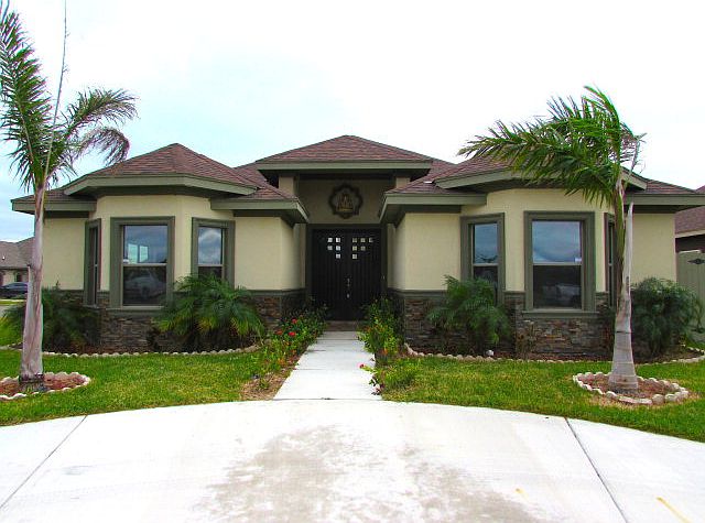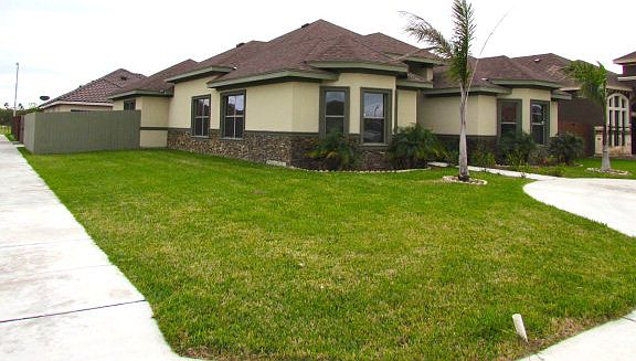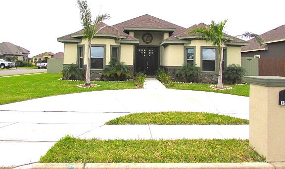 REDUCED $15,000!!New Construction on a corner lot! Beautiful One Story Stucco, slate rock detail & circular driveway in North MCallen! Located@ The Floresta! Prime location: 5 min to UT-RGV, Trenton stores, 10 min. to Renaissance Hospital. Double dark wood main door,3 bed,2 bath, living, dining, high decorative ceilings throughout the house displaying different styles, elegant fixtures, recess lighting, ceiling fans & walk in closets in all 3 bedrooms. Dark wood cabinetry, granite counters on kitchen & bathrooms, kitchen bar with space for 4 stools, 10ft dark wood doors, neat porcelain tile flooring. Garage has a room for washer & dryer & a 90 sqft total storage space (attic & small storage closet). Side 2 car garage with private electric fence & driveway. Great backyard for parties! CALL