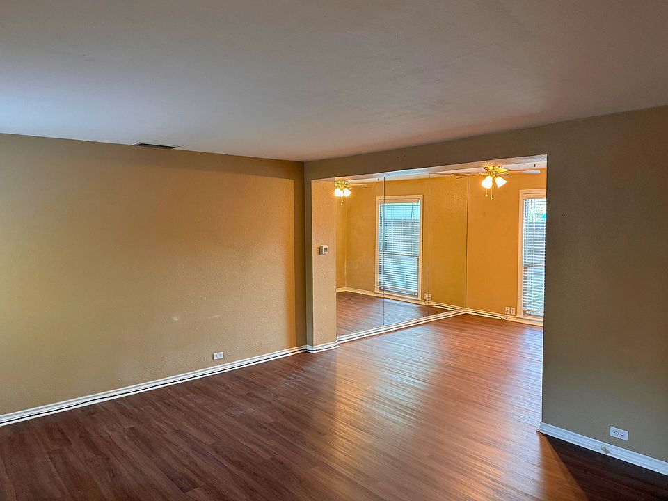 $250 off First Month's Rent! Water Paid by owner! Two story apartment in a hidden gem of an apartment complex! Unit 9 is a large 2 bedroom 1 bath, coming in at right over 1,100 sq ft. It features vinyl flooring on the first story, and original hardwood flooring on the stairs and in both bedrooms. Large living room with under-stairs storage that opens up to the formal dining. Both rooms have large windows for natural lighting. The charming kitchen has a door to the fenced in backyard, window above the sink, pantry, refrigerator, and an oven. Heading upstairs, you have the oversized master bedroom, the secondary bedroom, the bathroom, and a storage closet. The bathroom has a storage cabinet, and more storage space above the tub/shower. Each unit also comes with one reserved carport space, and an outdoor storage closet. Plenty of extra parking space on the street or behind the building. Pets on a case by case basis with a $250 fee per pet. No smoking.