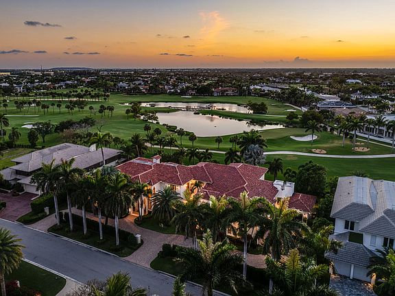 This double-lot golf course home in the prestigious Royal Palm Yacht & Country Club, boasts 207 feet of golf frontage, offering stunning views overlooking three Jack Nicklaus fairways!Step into paradise as you enter the expansive outdoor oasis featuring a heated, two-tier, child-friendly pool with a spa and playful water sprays. Entertain guests or unwind in style on the covered terrace, where a natural gas fireplace adds warmth and ambiance to cool evenings under the stars.The interior of this magnificent home is equally impressive, with first and second-floor master suites offering serene pool views and luxurious accommodations. The gourmet open-air kitchen is a chef's dream, featuring custom cabinetry, integrated appliances, and a huge walk-in pantry, perfect for culinary creation creations and entertaining in grand style. Take advantage of this rare opportunity to own a double-lot estate in one of Boca Raton's most exclusive communities.