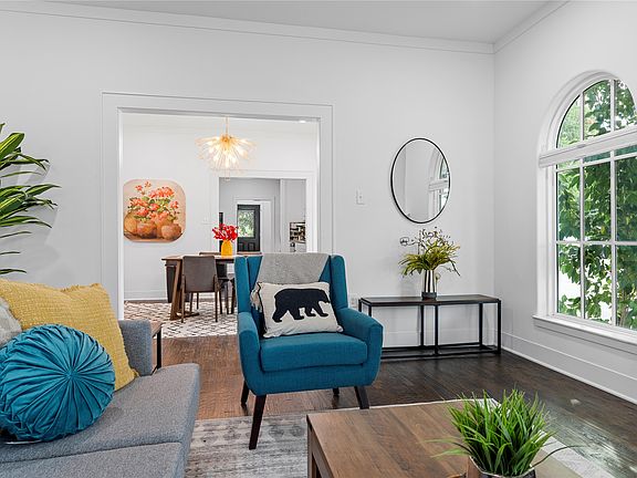 Renovated while keeping its charm, the front house offers 1,855 sq. ft. with 3 bedrooms, each with its own bath, plus living, dining, updated kitchen, breakfast nook, and laundry. The back house adds 732 sq. ft. with 2 bedrooms, 2 baths, full kitchen, and living area — perfect as a guest suite or rental.