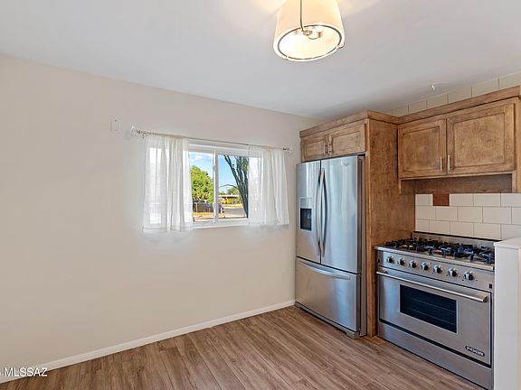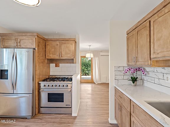 Charming single-story 2-bedroom home in the heart of Tucson, beautifully updated and move-in ready. The inviting interior features bright natural light, a warm color palette, and wood-look flooring throughout. The kitchen boasts new cabinets, counters, and backsplash with stainless steel appliances and plenty of storage. The upgraded bathroom includes an exquisitely tiled walk-in shower. Enjoy the spacious backyard with a large patio, mature landscaping, and room for pets or a garden. Centrally located just minutes from the U of A, Reid Park, the Zoo, El Con Mall, shopping, and dining--this gem offers the perfect blend of comfort, style, and convenience at an amazing value.