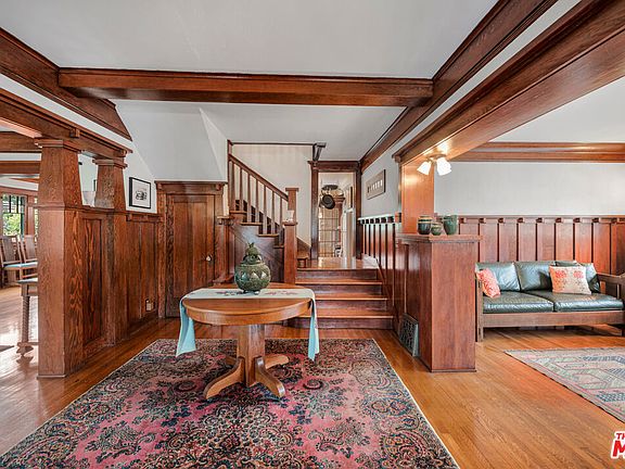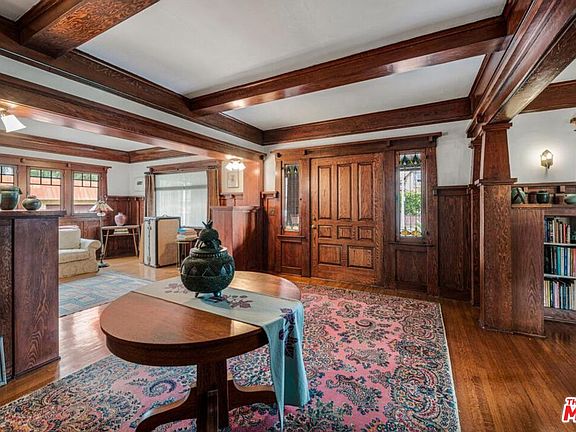 Classic and elegant California Craftsman in the Harvard Heights HPOZon the market for the first time in over 25 years! This architectural gem features 4 bedrooms plus a maid's room (5 total) and two beautifully remodeled bathrooms with period-appropriate styling.Lush landscaping in both the front and backyards creates a picturesque setting for this timeless home. Step inside to a spacious foyer, complete with a charming gentleman's caller bench, flanked by double parlorsideal as a living room and denone of which boasts a decorative fireplace with striking ziggurat brickwork. Beyond, the large formal dining room showcases a built-in china cabinet, adding to the home's historic charm.Upstairs, you'll find four generous bedrooms, plus a converted sleeping porch now serving as a convenient laundry room. The primary bedroom offers a walk-in or walk-through closet leading directly to the bathroom. A delightful deck off the back of the house provides the perfect spot to relax and enjoy the serene garden views.