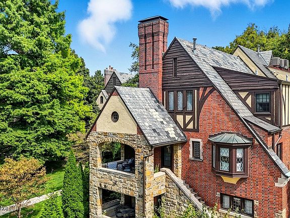 In coveted Tudor Terrace, this double unit with a private outdoor terrace presents a rare, sought-after opportunity for refined living in the heart of the Highlands. Just one block from Cherokee Park, this two-story condominium has been thoughtfully renovated with careful attention to detail in keeping with the timeless architectural design. Ascend your dedicated exterior stone staircase to find the covered porch with sweeping views of the neighborhood, a wonderful spot for enjoying a cup of coffee and a good book or entertaining family and friends al fresco. Once inside, prepare to fall in love with the spacious living room, complete with plaster walls, original trim work, and a gas fireplace with limestone surround. One of the highlights of this home is the professionally designed kitchen, which has been featured nationally in numerous online publications. The kitchen boasts custom cabinetry, black soapstone countertops, reclaimed terracotta tile floors, and an Ilve range, as well as a cabinet-front refrigerator and dishwasher. The kitchen opens to both the dining room with a hidden, Scalamandre wallpapered china closet, as well as the rear entry foyer with stunning wooden staircase to the second floor. The guest bedroom with an immensely charming window seat with a leaded glass window, along with a remodeled full bathroom, complete this level. The primary suite comprises the entire second level of the unit, a true retreat for the new owners. The bedroom space features vaulted ceilings, gas fireplace, two large closets and a sitting area. The gorgeous primary bathroom boasts dual sinks, marble countertops, and custom cabinetry that contains the washer/dryer. This floor also includes a bonus room that is currently used as an office as well as another huge closet space. This unit comes with two garage spaces with ample storage, each near the rear entry to the unit. A choice opportunity in one of everyone's favorite buildings in the Highlands!