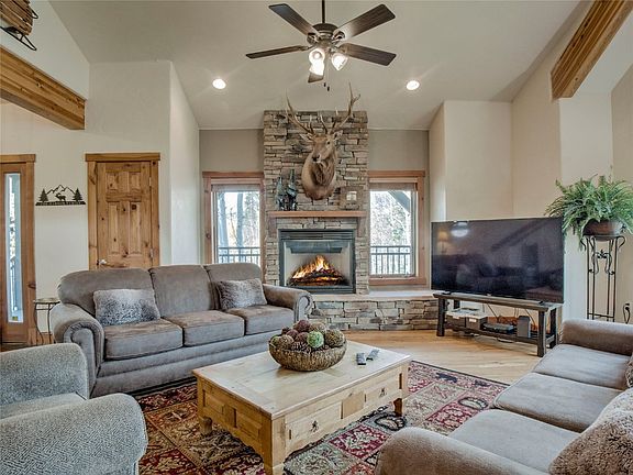 FABULOUS PRICE on this spacious mountain residence that sleeps a crowd! The ideal floor plan features a main-floor primary suite with fireplace, an open great room with vaulted ceilings, and an upper-level loft perfect for an office or extra sleeping space. The expansive lower level offers a pool table, two additional bedrooms, and a non-conforming bunk room—plenty of room for everyone. Enjoy three beautiful rock fireplaces and a kitchen with all-new appliances.