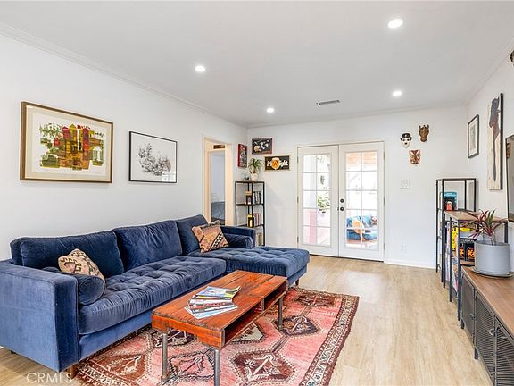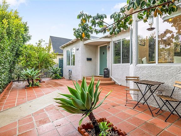 Corner lot cutie!!! This quiet, super private, urban oasis home features 2 spacious bedrooms and 1 full bath, massive covered patio and detached garage. The large and bright living room has a picture window overlooking the front courtyard and French doors that open onto the covered back patio with space for entertaining all of your friends and family, a green wall, and your very own movie projector and screen for movie nights. The recently renovated kitchen features charming, built-in banquette dining, newer stainless-steel suite of appliances, quartz countertops and a separate laundry/utility room. Privacy fence and mature hedges lend the feeling of complete seclusion. The remote access automatic gate opens to the garage, four additional parking spots in the driveway, which features a new 220V outlet for electric vehicle charging. The one car garage includes a built-in office-suite addition. Current owners had the home’s interior freshly painted, new laminate floors installed, added new central AC in 2020, Nest thermostat, Ring system and more! The location is very convenient to downtown, Hollywood, and Culver City with easy access to the 10 freeway and a metro train stop only a ten minute walk from your door, connection to LAX opening next year!