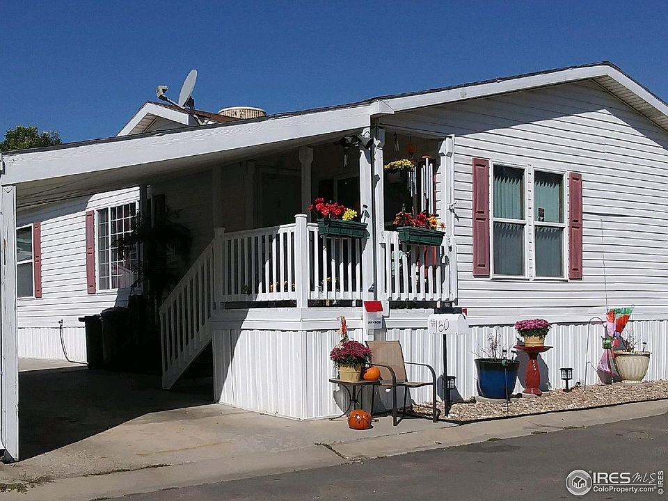 Welcome home to this 3 bed/2 bath home located in a 55+ community! Plenty of space to relax and/or entertain, whatever you fancy! 5 piece master bath, large bedrooms and everything you need on one floor! Carport, shed to store your tools&toys, nice back patio to enjoy the beautiful Colorado weather. Lot rent is currently $865/m. includes:clubhouse, community pool, exercise room, common area, snow removal. Potential buyers must fill out an application w/community/ applications available in office.