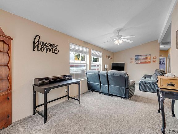 ATTENTION: 55+ COMMUNITY **PLEASE READ FOLLOWING** ALL BUYERS MUST BE PRE-APPROVED BY THE MOBILE HOME PARK, YOU CANNOT SUBLEASE AFTER PURCHASE, PET RESTRICTIONS: 2 PETS ALLOWED - DOGS MUST BE UNDER 18" AT SHOULDER WITH BREED RESTRICTIONS. LOT LEASE $1100/MONTH. PARK WILL LOOK AT RENTAL AND/OR MORTGAGE HISTORY, CREDIT SCORE 650 OR HIGHER, INCOME MUST BE $1500/MONTH OR ABOVE. Fall in love with this charming Immaculate home in Holiday Hills Village! Built in 2001,This single level, 2 bedroom, 2 bathroom home features an open living space floor plan while keeping functionality and accessibility top of mind. As your walk in you'll appreciate the pride of ownership and how nice this home is for the price! The kitchen features plenty of cabinet storage and is well set up for cooking and entertaining. Both Bedrooms are spacious with plenty of natural light! The Seller just installed a brand new water heater in 2023! Take advantage of the community Pool, Hot tub & Clubhouse! With easy access to I-25 You can get anywhere you need to go! This Home is located in a 55+ Community.