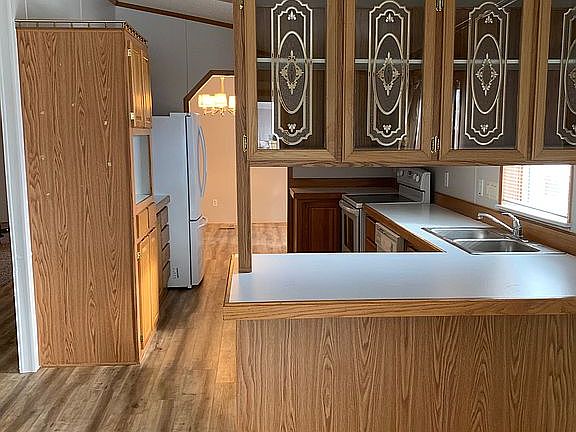 Beautifully updated home with large open floorplan and new kitchen located in a 55+Community, This 3 bed 2 bath home is on a large lot, with fenced yard, carport (Huge with plenty of covered space for all your toys, patio, tough shed, walk-in shower. Pride of ownership shines throughout this home. One of the largest available in this beautiful park. There is a large community center with a pool, community rooms for residents to rent billiards, laundry room, library, BUYERS NOTE YOU MUST BE APPROVED FOR THE LOT RENTAL PRIOR TO PURCHASE. MONTHLY RENT 860.00 PLUS WATER AND SEWER WHICH AVERAGES APPROXIMATELY $35-$40 PER MONTH. SQUARE FOOTAGE IS BASED ON TITLE FROM HOME. Seller will contribute towards new roof on home.