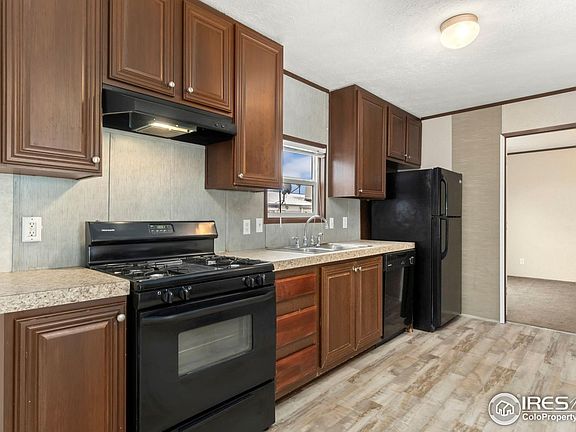 The Seller is offering a ONE YEAR HOME WARRANTY with the purchase of the home!!! Located in a 55+ Community, this home was built in 2016 features 3 bedrooms 2 bathrooms, 2 sheds, 2 car driveway, 2 entrances to the home, patio, small yard! One floor living, laundry room/units included, modern kitchen-lots of cabinets, plenty of windows, allowing the Colorado sunshine to shine in. Fences are allowed! Dogs are allowed! All buyers must be approved by the park prior to purchase. Big Community pool open durning the summer! Hot tub open year around! RV storage available, trails throughout the park, community room, community hall, along with community activities! Be as social as you please-plenty of things to keep you active and social! $1224 monthly lot rent. Chattel loans available! Transfers on a Colorado Motor Vehicle Title.