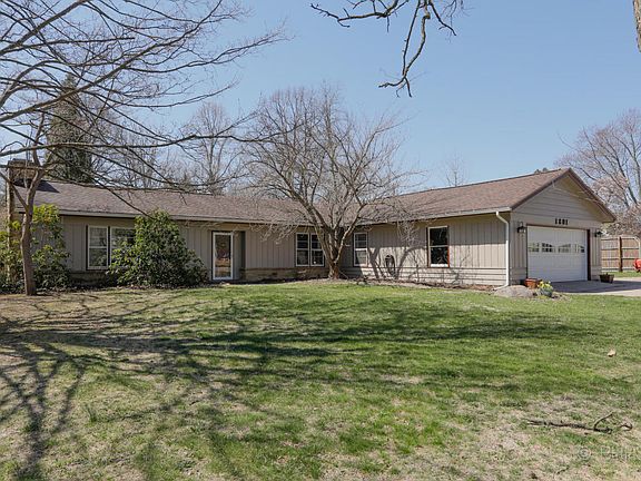 Charming Portage Ranch with a Mid-Century feel! Situated in the middle of mature trees on a 1+ acre lot this home is move in ready. Freshly painted throughout! Large living room features wood burning fireplace and many windows overlooking the yard. Dining room w/slate floor opens to expansive kitchen w/cozy eating area, stainless steel appliances and a very cool retro wet bar. Hallway leads to 2 bedrooms, one with it's own bath and one currently used as an den/bedroom/office. A 3rd spacious master bedroom with door to access deck & hot tub features an ensuite bath complete with whirlpool tub. There is a half bath and a bonus room for Laundry, exercise, playroom or anything else you may want to use it for! Bonus room has access to the yard and the 2-car garage.