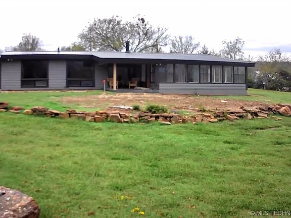 Step in to this newly upgraded 2300 m/l sq foot home sitting on 2 plus acres in city limits. This 4 bedroom 2 bath home has architectural character in a fantastic and private location. From the covered front porch you will step into the Spacious Sun Porch w/luxury vinyl flooring, mini split heat & air unit and wall of windows. The added heat & air gives you use of this pretty room and its pretty view year round. Luxury Vinyl Wood Look Flooring throughout the home, Open Living, Dining and Kitchen w/ Big Picture Windows. Kitchen boasts an eating bar, appliances, many many cabinets a window overlooking backyard and covered deck. 3 bedrooms have large picture windows, master bedroom has a super nice walk in closet and full bath. 2 Car oversized garage w/work area, SAFE ROOM, and walk in cedar closet. 2 CH/A Units, Storage Building, Shed, Fenced Backyard. Some of the upgrades include Metal Roof, Some Plumbing and Electrical, all new fixtures, countertops, flooring, interior and exterior paint and more. Conveniently located off Hwy 75 and I-40, Just an hour or so drive to Tulsa or OKC.
