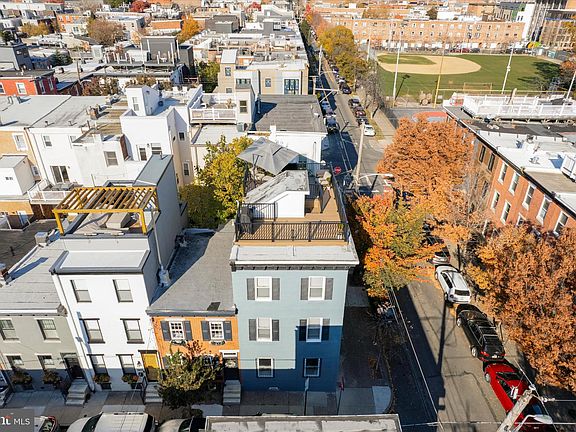 Delightful home with extraordinary roof deck offers the prefect blend of historic character and modern upgrades in vibrant Graduate Hospital. Corner property with numerous windows offers tons of natural light. First Floor: Living room features gas fireplace with large mantel, beautiful cherry floor and crown molding. Spacious eat-in kitchen with 42-inch maple cabinets, stylish black granite counter tops, stainless appliances, tile floor and rear door to outside area for grilling and trash/recycle storage. Adjacent to the kitchen is convenient half bath with laundry hookup offering the option of first-floor laundry. Second Floor: Two generously sized bedrooms provide comfort and flexibility for family members or guests. Also, parquet floors and full hall bath with tile floor and tub/shower. Third Floor: Discover a rare gem in city living: a full-floor primary suite. French doors lead to the bedroom with original random width pine floor, ceiling fan and built-in shelves. Comfortable sitting/office area features two closets, one of which is a walk-in. Generous primary bath has double sink vanity, tile floor and tub/shower. Fourth Floor: The highlight of this home – the roof deck. Renovated in 2020, with new roof overlay, this exceptional space offers unobstructed panoramic skyline views of Center City and plenty of space for entertainment. The deck features high-end "tiger wood" TimberTech composite decking, solar-paneled lights, and an impressive 10-foot diameter cantilever umbrella. Additionally, an outdoor TV mount is included, making it an ideal spot to entertain guests and watch the game outdoors. Basement has finished area ideal for game/playroom. Unfinished area serves as laundry/utility room with lots of storage. Other features include 9ft ceilings on first floor, wood floors and 5.5-inch baseboards throughout, center staircase from basement to roof deck with parquet landings, freshly painted exterior, replacement windows and all appliances. This home has a combination of historic appeal with an absolute breathtaking rooftop oasis. A block away from Marian Anderson Recreational Center allows access to an outdoor public pool and basketball court. Not to mention the YMCA is conveniently located just down the street. With only a quick ten minute walk to Rittenhouse Square, this property is a true gem in the heart of Graduate Hospital. Listing agent is related to seller.