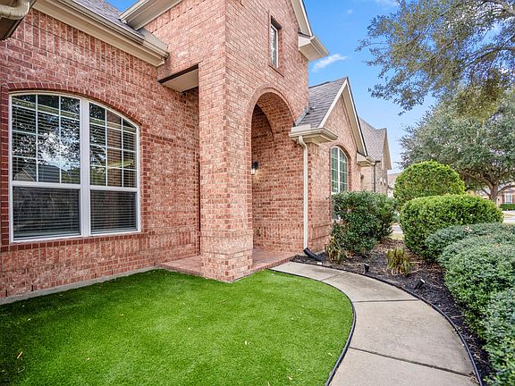 Beautiful 1.5 story home with HUGE game room up. This Ryland home offers high ceilings throughout, and an open concept feel with large island kitchen that offers a free flow to the family room and living room with custom built-ins. Fresh paint and carpet. The en-suite primary suite offers a small sitting area and leads into the bathroom with dual vanities, enormous closet with plenty of space. The garage offers a work bench and tons of storage options. Enjoy a covered back porch. GREAT convenient and easy location - close to shopping, dining, easy access to The Grand Parkway. The community offers a neighborhood park, pool, walking trails, tennis and pickleball courts. The home is in a great location.