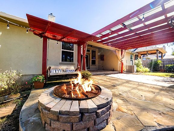 Step outside to your private backyard haven, surrounded by mature trees and designed for relaxation and connection. The covered patio flows into an extended flagstone area with a pergola and fire pit, creating a perfect setting for evening gatherings under the Texas sky.
