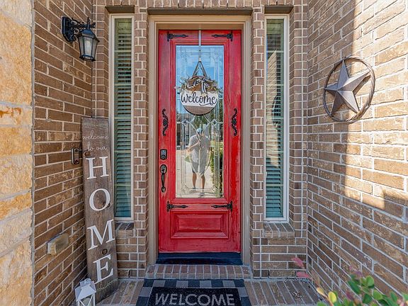 Step inside to discover soaring ceilings up to 13 feet, elegant crown molding, and a stunning three-way fireplace that anchors the open-concept layout. The kitchen is a chef’s dream, featuring a farmhouse sink, dedicated wine bar, and seamless flow into the family and breakfast rooms—perfect for entertaining. This home features three spacious bedrooms plus an office (or fourth bedroom) with coffered ceilings and elegant French doors. The primary suite includes his and hers closets, a large soaking tub, and a stand-up shower for a true retreat feel. The covered patio is perfect to escape the Texas heat and is fully equipped with a firepit for those chilly evenings. The icing on the cake is the whole home Generac generator, never be without power again!