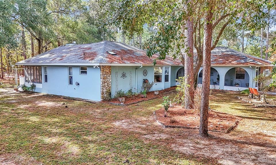 Beautiful home in the sought after friendly community of The Forest At Rainbow Springs. Charming split floor plan home that boasts over 2400 square feet of living space! This home features 3 generously sized bedrooms and 2 full bathrooms, offering both comfort and functionality. The open lay out offers plenty of space to relax and the large windows allow natural light to fill every room. The kitchen features a built in oven and a cooktop conveniently located on the island, creating the perfect set up for both everyday cooking and entertaining. The spacious master bedroom offers comfort and privacy, complete with a large en-suite bathroom featuring a walk-in shower. Double doors open directly from the bedroom onto a private enclosed porch, creating a peaceful retreat perfect for relaxing mornings or quiet evenings! Gather with family and friends in a warm, inviting living room where the fireplace creates a perfect backdrop for cozy nights spent indoors. A private office is conveniently located just off the garage, offering the perfect space for remote work, organization or creative projects. Its quiet location provides privacy while remaining easily accessible from the main living area. The property has a large private back yard and there is plenty of room to add a pool! There is also a shed out back for additional storage. This low HOA community offers many different amenities which include a private beach on The Rainbow River, community pool, clubhouse with a restaurant, pickleball/tennis courts, walking trails and a calendar with events offered for its members. Within 5 minutes, there is a 9 hole golf course at Rainbows End. Property is located within 5 minutes of The Rainbow River, which is spring fed and stays 72 degrees year round. A short 7 minute drive to Dunnellon where you will find restaurants, grocery stores, medical offices and shopping.