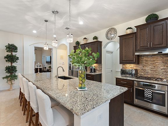 From the moment you walk through the door of 18012 Turning Stream in the Falcon Pointe community it delights. A welcoming, expansive foyer leads you into the large and open kitchen, living and dining spaces. Meticulous care has kept this Chesmar one-story home in exceptional shape, heightening the overall living experience. This spacious home is made for an easy and elegant entertaining lifestyle. The primary room has a generous walk-in closet, garden tub, shower and individual sinks with plenty of counter space for each, and all four bedrooms are beautifully appointed with plenty of windows and spacious layouts. There is also an additional office or flex space which has been converted by some with this floor plan into a fifth bedroom. The kitchen, dining and living spaces have had upgrades in lighting, setting an upscale tone in the communal areas and elevating the already stunning, extra long 16 foot granite island with seating room for six. Turn the space to a serving area for larger parties and entertain inside and outside with a beautiful covered and screened in porch that will be the envy of all who visit. The outdoor porch operates seamlessly as a secondary seating area, providing shade and comfort all summer long with an outdoor television that will stay in place for the next homeowner. Relax outdoors in the custom screened in porch with sun shades and enjoy the peaceful, secluded surroundings and partially xeriscaped landscaping. With a three car garage, this home cannot be more appealing, allowing space to either park three cars, two and a golf cart or keep the third for a workspace. Falcon Pointe offers a tremendous amount of amenities, including multiple pools, a central park with open fields and outdoor gym station, a six acre Resident's Club, an 18-hole disc golf course, zip line park, dog park and many miles of hiking and biking trails. This beautiful home is very close to the new Baylor Scott and White Hospital, medical facilities, the Blackhawk daily-fee golf course. The reputable and sought-after Pflugerville Independent School District serves the Falcon Pointe community with some schools within the community itself. Find everything you desire within this stellar 710 acre master planned community and perhaps a few you never knew you needed.
