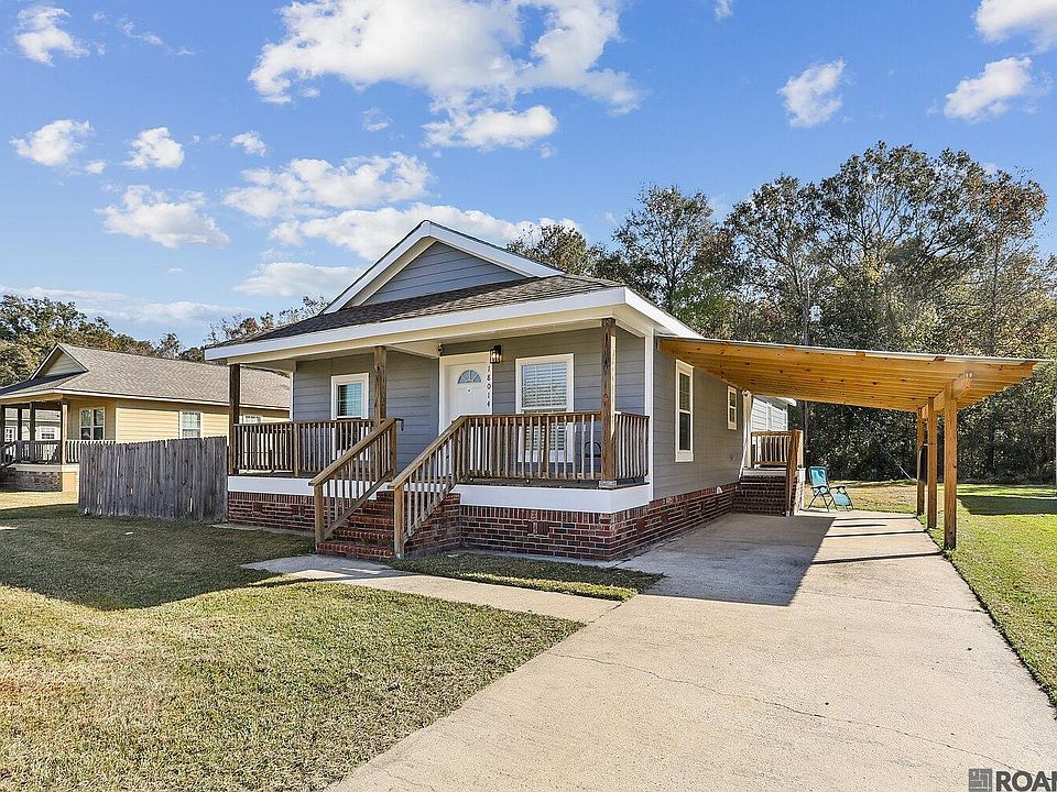 This updated Acadian style 3-bedroom, 2-bath home offers a spacious living room and kitchen featuring a large L-shaped island for plenty of custom cabinets and counter space. The home is located in Zachary Schools, qualifies for 100% financing, and will not stay on the market long. The owner’s suite includes a large soaker tub, separate shower, and two walk-in closets. Major updates include a new roof (2021), HVAC (2023), Water heater (2018), bathroom updates, and fresh exterior paint. The seller also added a carport for covered parking or extra space for entertaining. Enjoy the front porch with upgraded safety railings, a fenced yard, and a storage shed out back. Refrigerator and electric range remain. Flood insurance is required (under $675 per year). Home is 1.5 miles from a Brec park (playground, recreation center and archery) and minutes from all your basic necessities.