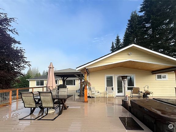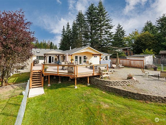Daylight Rambler Lives like a 4+ Bedroom, Main floor features you will Love, Spacious Deck overlooking yard with Hot Tub & Fire pit, plus a Shop/Barn that is 40x48x16 w/lean to off it. The layout connects the Family Room w/Gas Fireplace & Kitchen w/Island, Dining rm, & Living rm, making it perfect for entertaining. Downstairs separate living space w/Kitchen & additional rms, private entrance option. All the space you need for family/Rental options. Peaceful Setting, w/50 Year Roof, Milgard Windows, New Heat Pump/AC & Furnace, Automatic 20 KW Generator, Kitchen Upstairs w/Maple Cabinets pull outs, soft close & Under Cabinet Lighting, Double Ovens, Gas Range, Granite, SS appl Vaulted Ceilings W/Fans, Skylights, French Door's Gazebo, Fenced yd