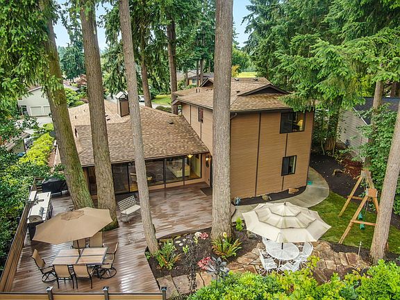 A truly unique and custom 5 bedroom 3 1/2 bath Rambler, with an upper level guest suite, located in the much sought-after Brae Burn neighborhood with lush gardens and great landscaping. This mid-century modern home has been totally remodeled while maintaining the flair of the 1960s. The home features main level living with upper level that was designed as guest suite with bathroom, bedroom, and small kitchen in great room. The main level living features a large master bedroom with 5 piece bathroom, great room, galley kitchen with cherry cabinets and Viking gas stove top. There are so many upgrades including central vac, 2 dishwashers, solid core doors, hardwood and tile flooring, with granite and marble throughout. The detached garage includes a heated shop and there is a 740 sq ft deck for entertaining. A gem that must be seen to be appreciated!! Brae Burn is a true community with virtually unrestricted golf, & year-round activities. The club house & pool provide a wonderful place to gather. Minutes to Microsoft, Marymoor Park, & Idylwood Beach Park.