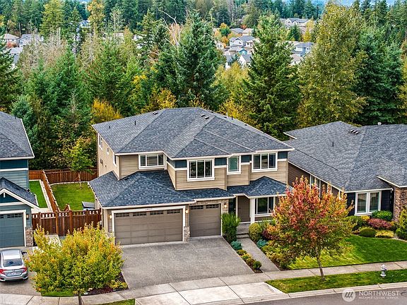 Beautifully maintained home in the SBLSD, backing to a greenbelt w/a lg yard & tons of extras! Enjoy freshly painted cabinetry throughout the kitchen, baths, and living room built-ins. The main level features a bedroom next to a ¾ bath, mudroom entry from the 3-car garage, and a stunning covered patio with remote blinds and outdoor TV. The daylight basement offers a full suite with bedroom, bath, kitchenette, large living area, and theatre/multi-use room. Front and back sprinklers, concrete patio, shed, garden beds, EV charger, swing set & more complete this remarkable home. All of this, in beautiful Tehaleh, close to schools, dining, parks, and over 30 miles of trails!