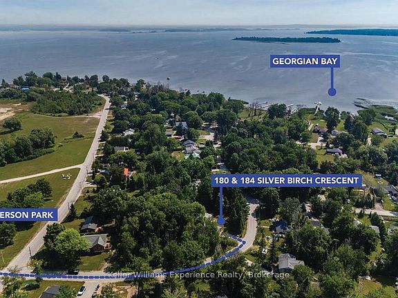2 Properties for the Price Of One !! Welcome to 180+184 Silver Birch Crescent, a charming 2-bedroom, 1-bath 3-season cottage nestled on a spacious lot in the sought-after Paradise Point community. Just a short walk to Georgian Bay at Patterson Park, this cozy retreat offers the perfect getaway or family cottage experience. Featuring a newer roof, newly installed flooring, and a new heat pump providing both heat and A/C for added comfort. The property also includes a large detached garage, ideal for storing beach gear, tools, or recreational toys. As a rare bonus, the adjoining lot at 184 Silver Birch is being sold in conjunction with this property, offering added space, privacy, or future potential. Don't miss this unique opportunity to own a double-lot cottage package near the water!