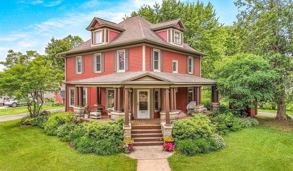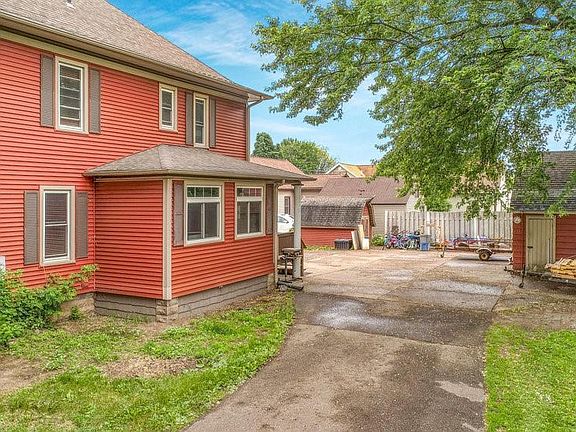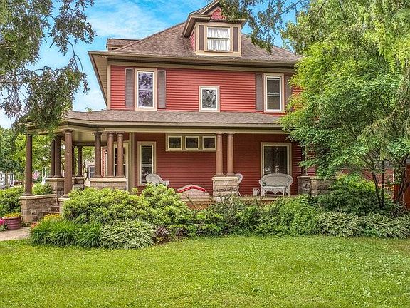 Own part of Bloomer history! Nestled on a corner lot, this 4 bed, 1.5 bath historical beauty known to many as the "Baby Hospital," has many architectural details still intact - such as a wrap around porch, grand foyer, open staircase, leaded glass windows, exquisite woodwork, original flooring & trim, door hardware & more. Additional features include butlers pantry, bay window with seat, claw foot soaker tub & separate "hidden" staircase. Open, 3rd floor attic for added expansion. Pre-inspected.