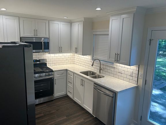 This unit has been completely remodeled with new paint, flooring and lighting throughout. Everything has been redone in the kitchen and bathrooms. New countertops, stainless steel appliances with a gas stove, new sink, new vanities and cabinetry throughout. There are brand new windows and even the front and back doors have been updated.