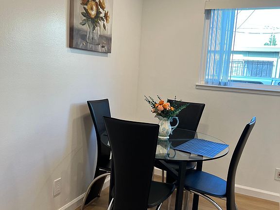 Convenient location, close to everything, downtown Castro, Shoreline, Central Expy, El Camino Real, 237, 85, MV. Police Station, Restaurants, Cal-Train, Google, etc. This fully furnished 2 bd/1br apartment, has wood floor throughout the whole unit. The kitchen has brand new white cabinets, granite countertop and appliances, everything is new. Dining room within the kitchen, and a very spacious and comfortable living room with lots of sunlight. Bathroom is remodeled with brand new tub, marble shower wall and vanity, easy to keep clean and look clean. Each bathroom equipped with a queen size bed, nightstands, lamp and a table and a chair and closet. Downstair unit has its own back yard. You can enjoy your own private peaceful time there! This whole building has double pane windows which cancel the most of noise, tankless water heater and ample parking spaces which is very rare in downtown Mountain View. Each unit has one designated covered carport. It is a very quiet and peaceful community, besides the train track noises every 15-30 minutes during the daytime and stops from 12am to 5:40am. Please check the Caltrain schedules to verify. Very nice neighborhood. Welcome you to rent short term or long term. It is like Airbnb, just pack your luggage and enjoy your time here, worry free! Every utility is included and wifi too! One month and up