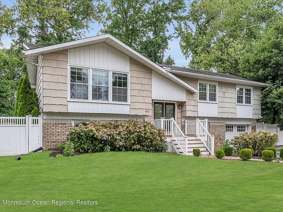 ANNUAL RENTAL - AVAILABLE IMMEDIATELY! Spacious and sun-filled 4-bedroom, 3-bath home in the heart of Oakhurst. Open-concept main living area features gleaming hardwood floors, vaulted ceilings, and sliders leading to a beautiful composite deck overlooking the manicured backyard. The updated kitchen offers BRAND NEW stainless steel appliances and a large center island with seating. Hardwood flooring continues throughout the upper level, including the primary suite with its own full bath, two additional bedrooms and another bath. The lower level provides a 4th bedroom, a full bath, and a versatile den perfect for a home office, gym, or hobby space. Enjoy the private, fully fenced backyard with both an upper deck and a lower patio. Conveniently located near schools and Houses of Worship