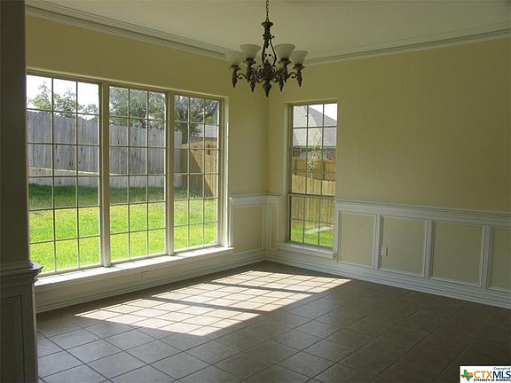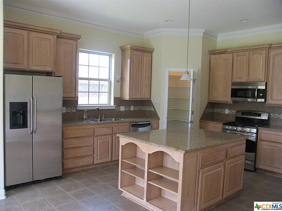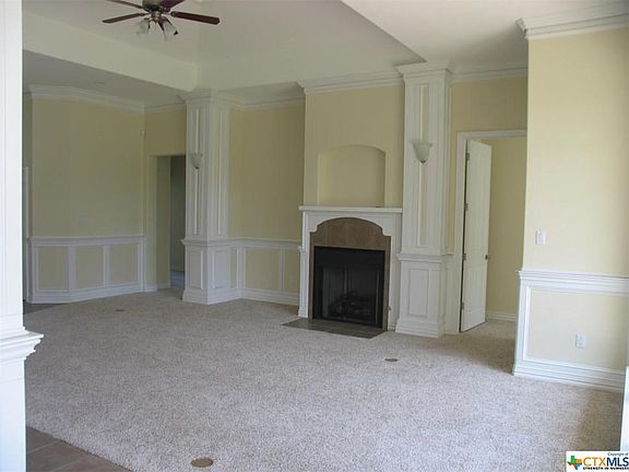 Situated in quiet Warriors Ridge, is this 4 bedroom, 2 full bath home. Custom amenities throughout this spacious home include custom cabinetry, souring ceilings, crown molding, along with other custom touches throughout. Bright entry leads to the spacious living area, which highlights beautiful design with a high ceiling, ceiling fan, fireplace, large windows, and open concept to dining area and kitchen. The kitchen boasts ample custom cabinetry, pendant as well as recessed lighting, large island work space, granite surfaces, stainless appliances, to include a gas range, and a corner pantry. The master is truly a suite, boasting tray ceiling, ceiling fan, and large windows as well as an en suite bath offering separate marble vanities, large jetted tub, separate shower with dual shower heads, and custom walk-in closet. The minor bedrooms are serviced by a well-appointed second full bath. Outdoors, there is a covered back patio, privacy fencing, and sprinkler system. Desirable amenities include quiet neighborhood, custom details throughout, ceiling fans throughout, separate laundry room, and remote entry two car garage.