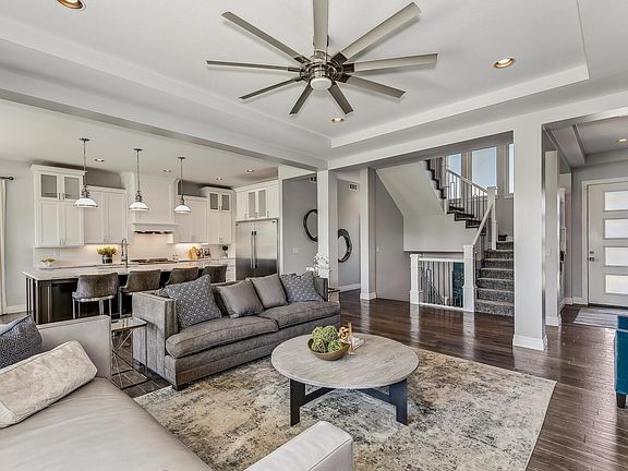 This is the ONE! Make your dream home a reality in this 6 bedroom, 5 bath contemporary home on a 1.34 acre lot with an amazing garage that can fit 10 cars! Located in the desirable Garden Walk Estates with Andover Schools and Sedgwick county taxes and easy access to the Red Bud Trail. This home features a striking front elevation with full brick and glass garage doors. Upon entering you will notice the 10' ceilings, floor to ceiling stone fireplace, double sliding glass doors, and beautiful wood flooring. The gourmet kitchen features a 5' x 10' island, Frigidaire Professional refrigerator, Smeg gas range, new Kitchenaid dishwasher, and spacious walk-in pantry. Retreat to the gorgeous primary suite with double sliding glass doors leading to the covered patio. The primary bathroom is like a spa - spacious and elegant - featuring double vanities, freestanding tub, custom tiled shower, and an oversized walk-in closet by California Closets. One more bedroom, a full bath, and laundry room with sink and plenty of counter space finish the main level. Upstairs you will find two more bedrooms, full bath, and a roomy loft. Entertaining is a breeze in the well-designed walk-out basement that features plenty of light, family room, stunning wet bar, two bedrooms, a full bath, half bath, a bonus room that could be used for an office, workout, or hobby room, and 2 storage areas. Now what you've been waiting for - the garage! The garage is a car enthusiast's dream with 1600 square feet to fit your car collection, boat, outdoor equipment, and so much more. It features 14 foot tall ceilings so it can easily accommodate an automotive lift to fit even more cars! Features include: high lift glass garage doors, epoxy floors, Big Ass fan, 2 additional side garage doors leading to additional parking, led lighting, projector and screen, sound system, 220 volt for car charging, washer/dryer hookup, and all while staying cool in the summer with A/C and warm in the winter with heat. Extend your living space outdoors in a private oasis featuring a large covered composite deck, huge concrete patio, fully fenced backyard, picturesque landscaping, Gemstone exterior led lighting, and plenty of room for a future pool and poolhouse. There is even gate access leading to the Red Bud Trail. This luxury home is truly a dream come true. Don't miss out on the opportunity to make it yours!
