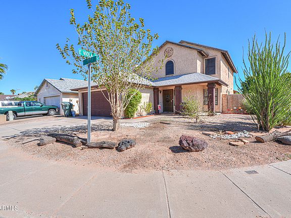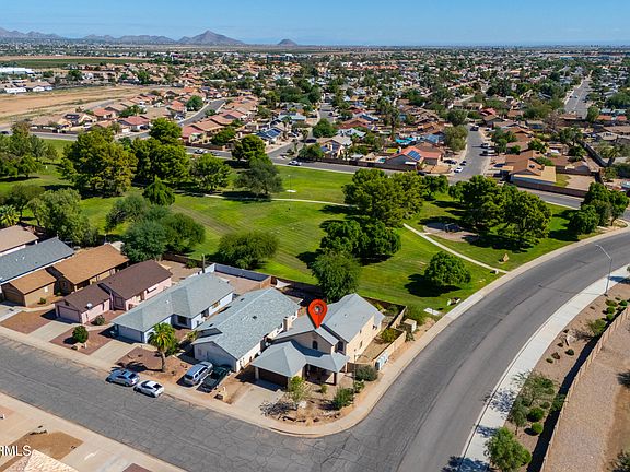 NO HOA! Welcome to this spacious 1,863 sq.ft., 3-BD+Den, 2.5 BA corner-lot home that backs to a lush green park! Walk in to the great room with soaring vaulted ceiling featuring a cozy fireplace, french doors leading to rear patio, and a formal dining area.Master BD includes a patio exit, and a bath with a walk-in shower, dual sinks, and double closets. Laundry and powder room located by the breakfast nook. Eat in kitchen includes white cabinets, granite tiled counters, breakfast bar, wall oven, built in microwave, electric range/oven and dishwasher. Upstairs bedrooms and den also feature vaulted ceilings. One bedroom is oversized with 2 closets, while the other offers walk-in closet. Desert garden backyard w/ mature trees and covered patios in both front and back yards.