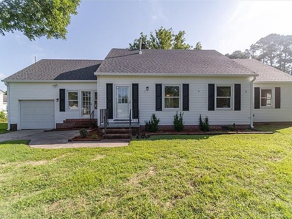 Great location for commuting to the Hampton Roads VA Area! As you walk in the front door the foyer opens into the large living room. The kitchen features new granite counters, stainless appliance package including the refrigerator. Home office has a private entry door off the driveway. The den leads to the fenced backyard which makes entertaining a breeze. Single car attached garage. New roof, new 3 bedroom septic, fresh paint with new vinyl flooring in the kitchen, dining area and full bath. Spacious bedrooms! Affordable county taxes! Move in ready!