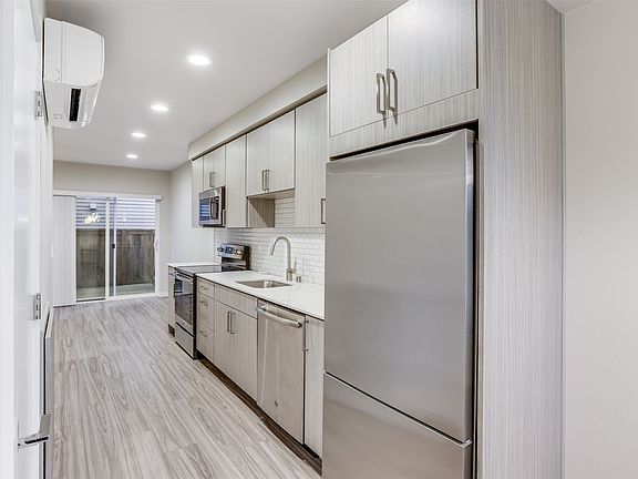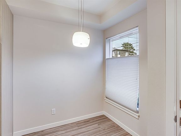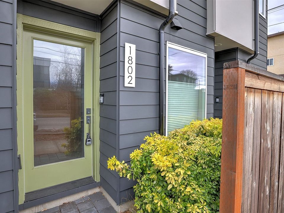 Boutique community of urban-style townhomes minutes to popular Ballard and Greenwood shops, services, Loyal Heights Bakery, Golden Gardens. Clean lines, planked flooring, tile and quartz finishes, fashionable fixtures complement this snazzy Earth-friendly, open concept three level design. Well-equipped kitchen features plentiful cbntry, opens to living areas. Stairway up to primary suite on third level, addtl bdrm on second level; crisp baths. Ductless mini-split for heat and AC; high-end applcs; stacked W&D. Lots of available street prkg. Living space extends to deck, covered balcony. Excellent transit options nearby, minutes to main commutes. No HOA! Attractive setting offers the best in smart, contemporary Seattle living and curb appeal.