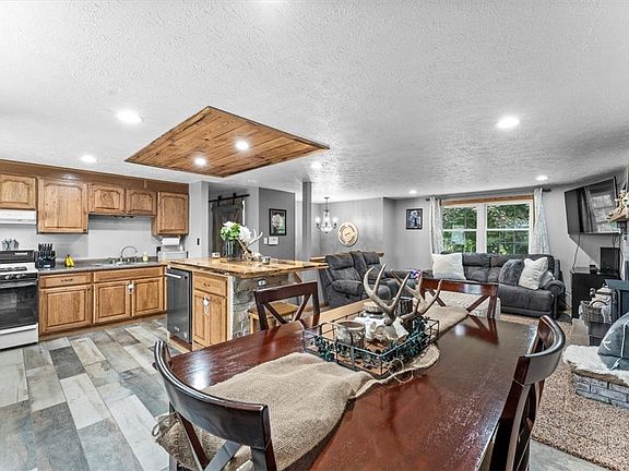 Welcome home !! This move in ready home is looking for a new owner. Greet friends and family in the formal entry which flows to the main living level or to the lower level family room area. The upstairs is a open floor plan with updated kitchen, dining/living room combination with a wood burner fire place. The kitchen has been updated with a large island, new flooring and appliances are included. The living room has a brick fireplace with wood burner. The remodeled hall way includes a custom barn door closet, updated full bath and 3 bedrooms. The lower level has a family room, with a bar area and fireplace. There is a separate room that could be a 4th bedroom which is currently being used as a walk in closet. The back of the property has a fire pit area for those family/friends gatherings. This is a must see!!