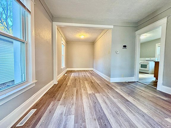 This is a 3-bedroom, 2-bathroom home located on the South Side of South Bend. The owner provides a stove/oven and a refrigerator. On the main level, you will find one bedroom, along with the kitchen, living room, and dining room. The upper level contains two additional bedrooms and a full bathroom.